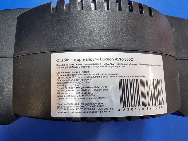 Стабилизатор напряжения АВТОМАТИЧЕСКИЙ СТАБИЛИЗАТОР НАПРЯЖЕНИЯ Luxeon AVR 500D
